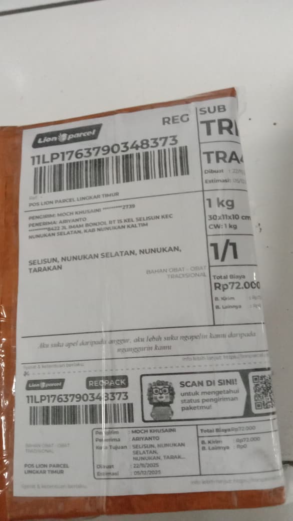1.kirim data lengkap pengiriman