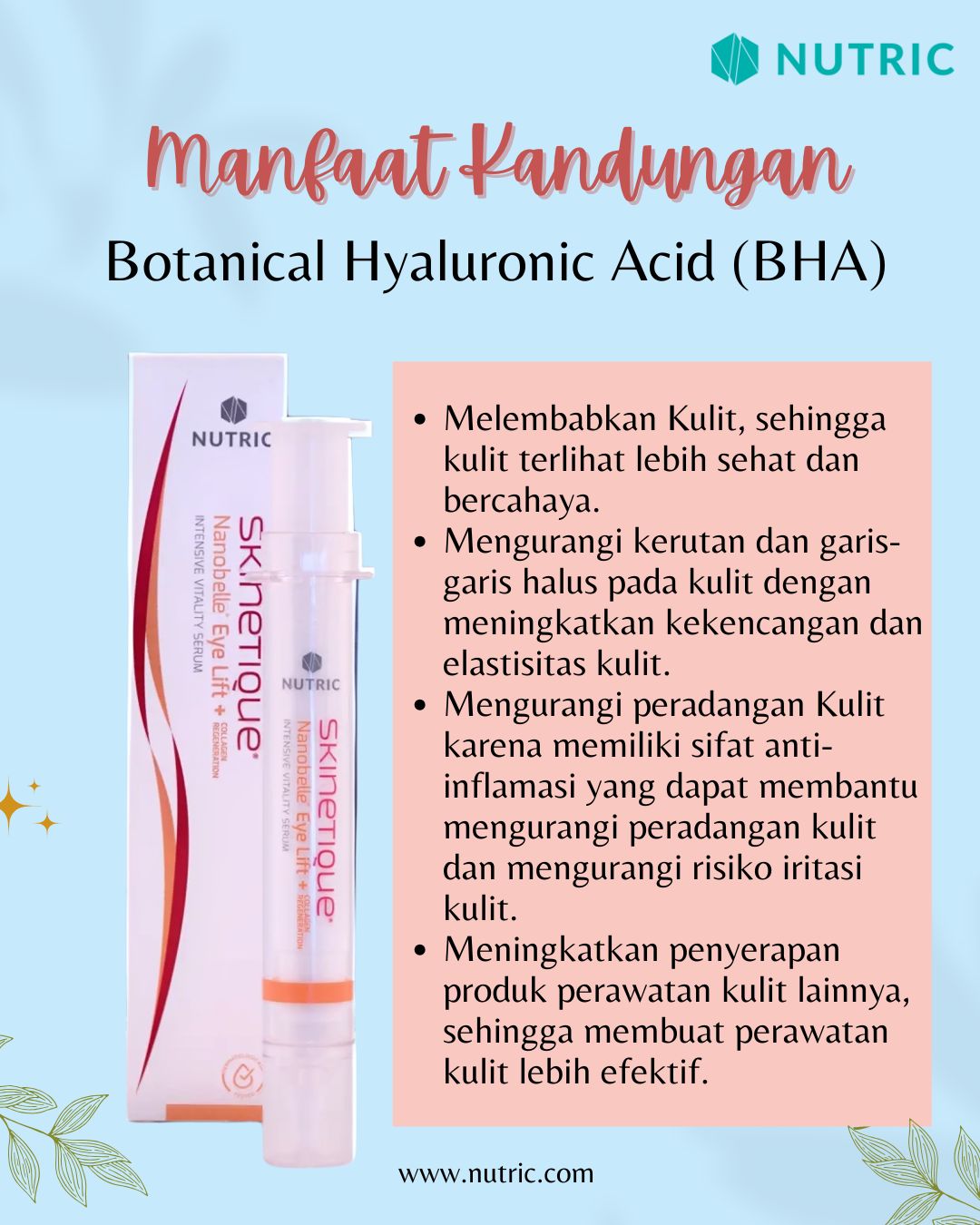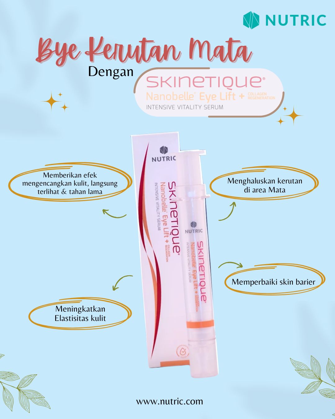 Bagaimana Skinetique® Nanobelle® Eye Lift + Collagen Regeneration Intensive Vitality Serum membantu mengatasi garis-garis halus dan kerutan?